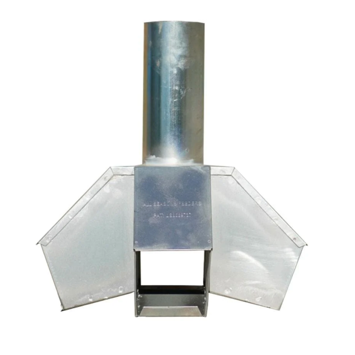The galvanized protein feeder tube head can be purchased as a replacement for the ASF 300-lb. or 800-lb. protein feeder or when building your own with a 55-gallon drum. The 4-way deer feeder head design has an adjustment baffle to regulate flow. Perforated bottom to keep feed dry.